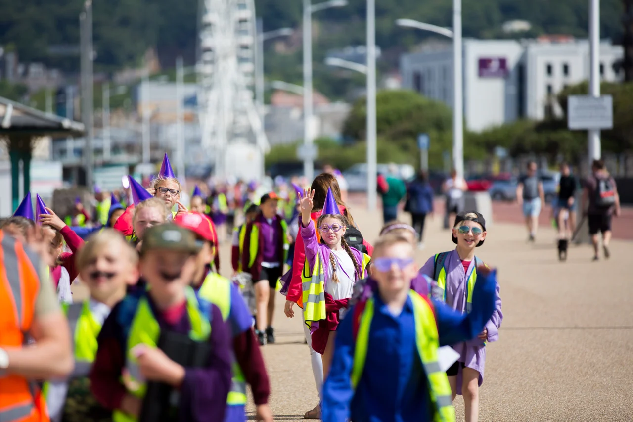 500 children and members of school staff received a personalised invitation, each with a secret code built into it. On the morning of the party, undercover agents arrived at the eight schools to help the children create their own costumes. Eight teams of disguised partygoers then marched through Weston to the seafront.